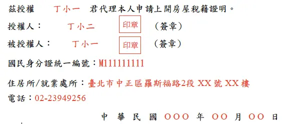 如果委託他人代為申請,則除受委託人須攜帶身分證件及印章外,另須攜帶委託人(即所有權人)之身分證影本、印章及授權書。