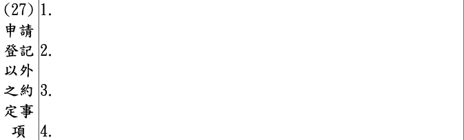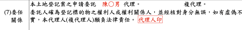 填寫申請欄位中無法填寫,但又必須要填的資訊。如: 公司法人申請土地設定登記時,應記明「確依有關法令規定完成處分程序」,並蓋章。