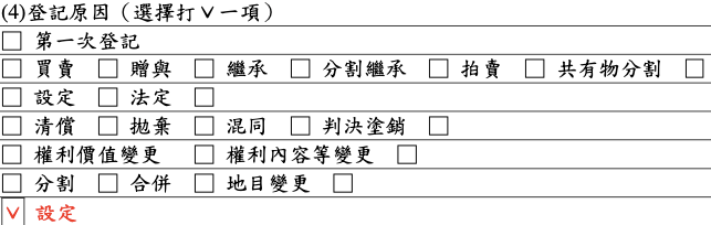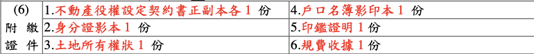 注意:以自己土地、建物設定不動產役權者檢附不動產役權設定清冊。