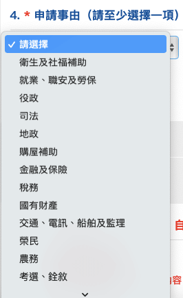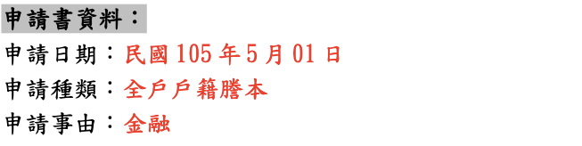 填寫「申請日期」、「全戶戶籍謄本」、「申請事由」。