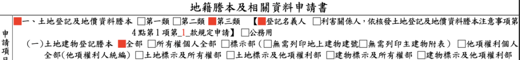 - 第一類登記謄本:登記名義人或依法可以申請。