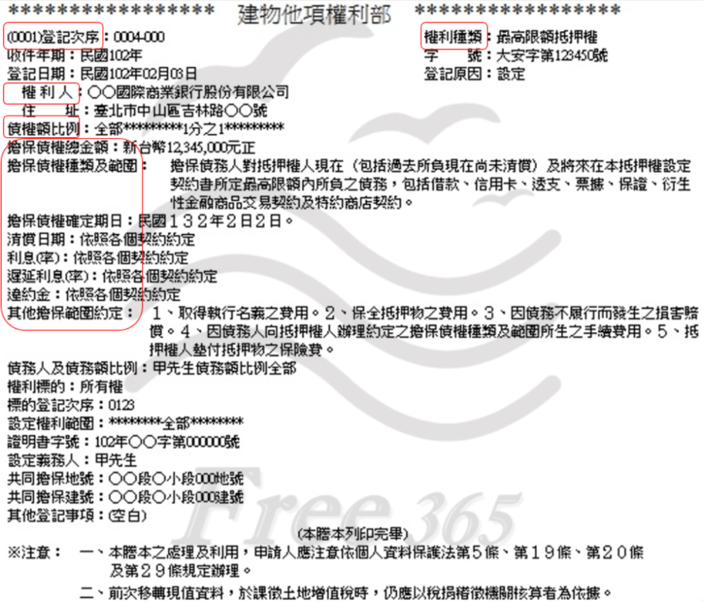 - 登記日期(權利人資訊、住址)