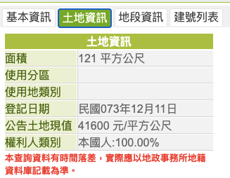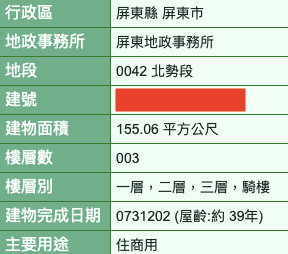 - 地籍圖資網路便民服務系統(可以用門牌查詢看到屋齡、建物面積、主要用途等資訊)