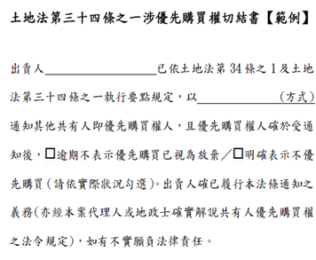 - 第 10 條 修正放棄優先購買權切結方式