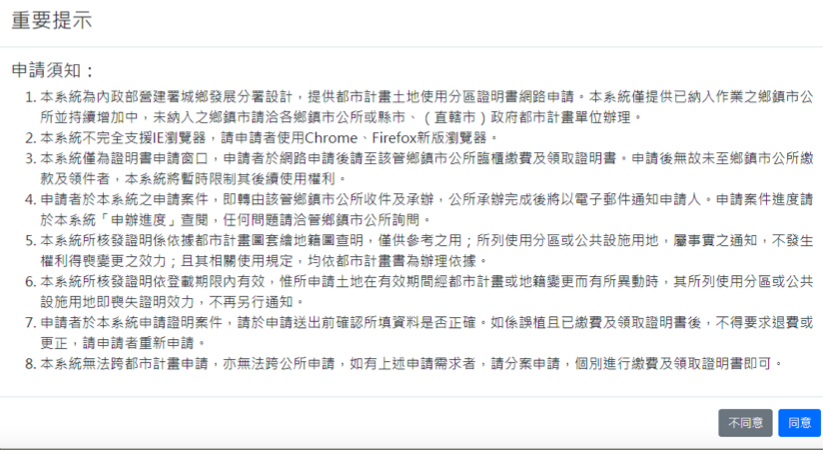 這裡只是申請,最後還是要去鄉鎮市區公所拿證明書和繳錢,點選「同意」。