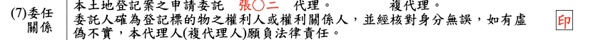 填寫「受託人資訊並蓋章」、「委託人資訊並蓋印鑑章」、「代理人資訊並蓋章」。