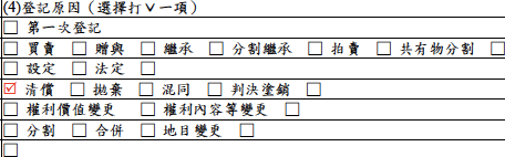 勾選「清償」。如果是地上權塗銷,勾選「拋棄」。