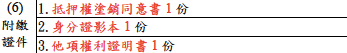 - 塗銷他項權利之證明文件(因權利混同申請塗銷時免附)。