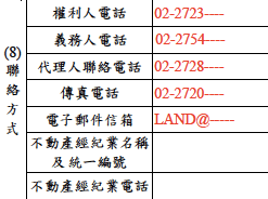 填寫「權利人電話」、「義務人電話」、「代理人電話」。