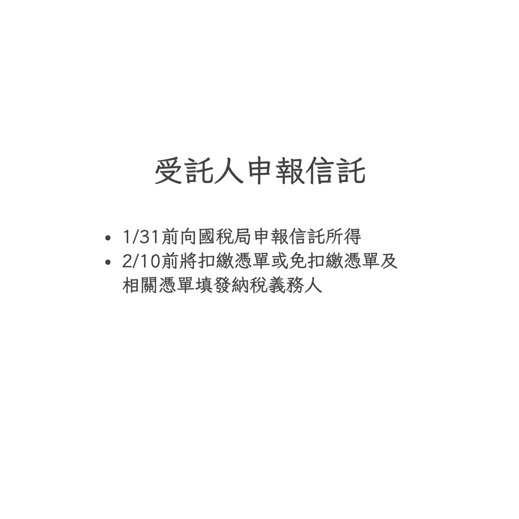 【民眾實用篇】受託人如何申報信託不動產? 發佈留言 / 代書 101, 民眾實用篇 / 黃昭慈 製圖人:黃昭慈 本文同步刊登 Medium 【目錄】 【前言】 依所得稅法第 92-1 條,受託人應於每年 1 […] 【民眾實用篇】受託人如何申報信託不動產? 閱讀全文 »